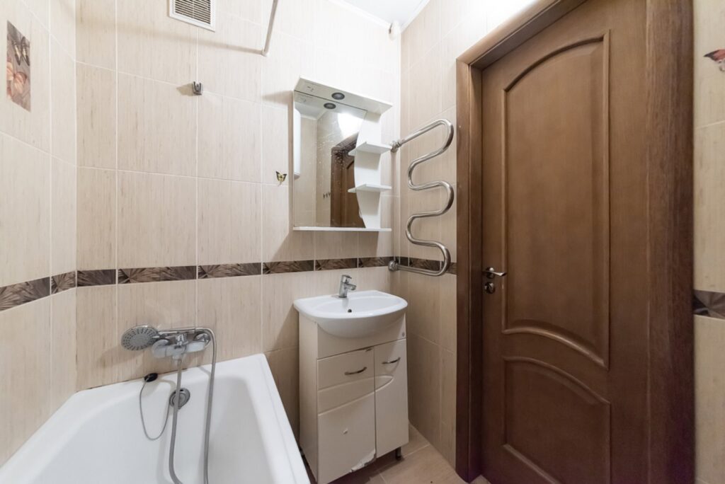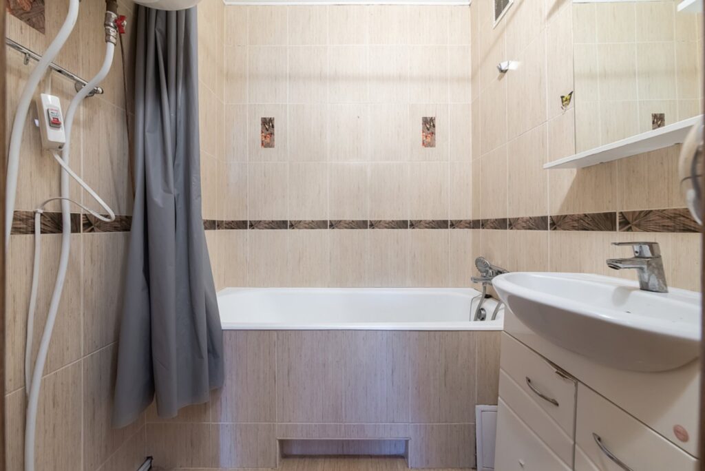 - в санвузлах-плитка, підлога-добротний паркет.